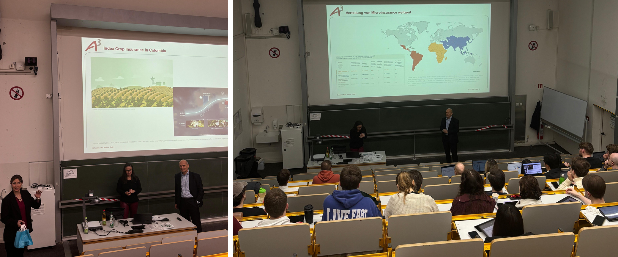 Welchen Beitrag kann Microinsurance zum Erreichen der Sustainable Development Goals leisten? Eine Antwort auf diese Frage erhielten die Studierenden der FAU Erlangen-Nürnberg im Rahmen eines Gastvortrages in der Mastervorlesung Versicherungs- und Risikotheorie am Lehrstuhl für Versicherungswirtschaft- und Risikomanagement (Prof. Dr. Nadine Gatzert). Die Gastredner Frau Dr. Manuela von Göler und Herr Thomas Binder von der AAA Auctor Actor Advisor GmbH präsentierten spannende Einblicke aus einem Projekt zur Microinsurance in Tansania. Anhand persönlicher Erfahrungen, eindrücklicher Bilder sowie konkreter Beispiele verdeutlichten sie den Mehrwert von Microinsurance in Entwicklungsländern. Auch gingen sie auf die vielschichtigen Herausforderungen ein – vom Vertrieb per SMS via Handy bis hin zur Schadenabwicklung ohne offizielle Dokumente.